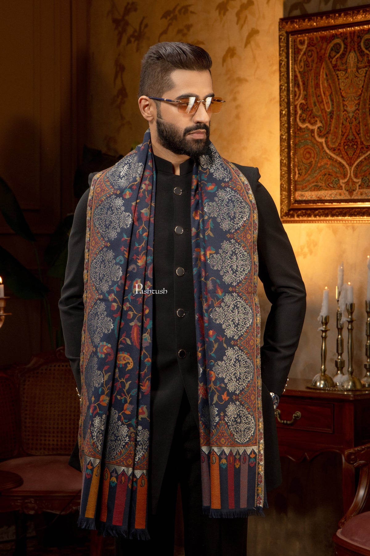 Pashtush Mens Faux Pashmina Stole, Twilight Design, Blue