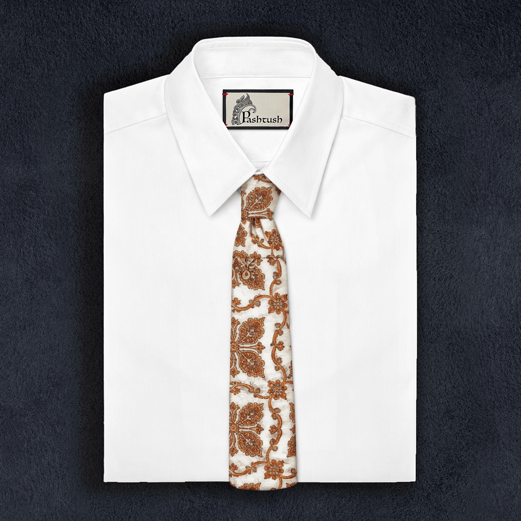 Pashtush mens Fine Wool tie, Embroidered design, Multicolour