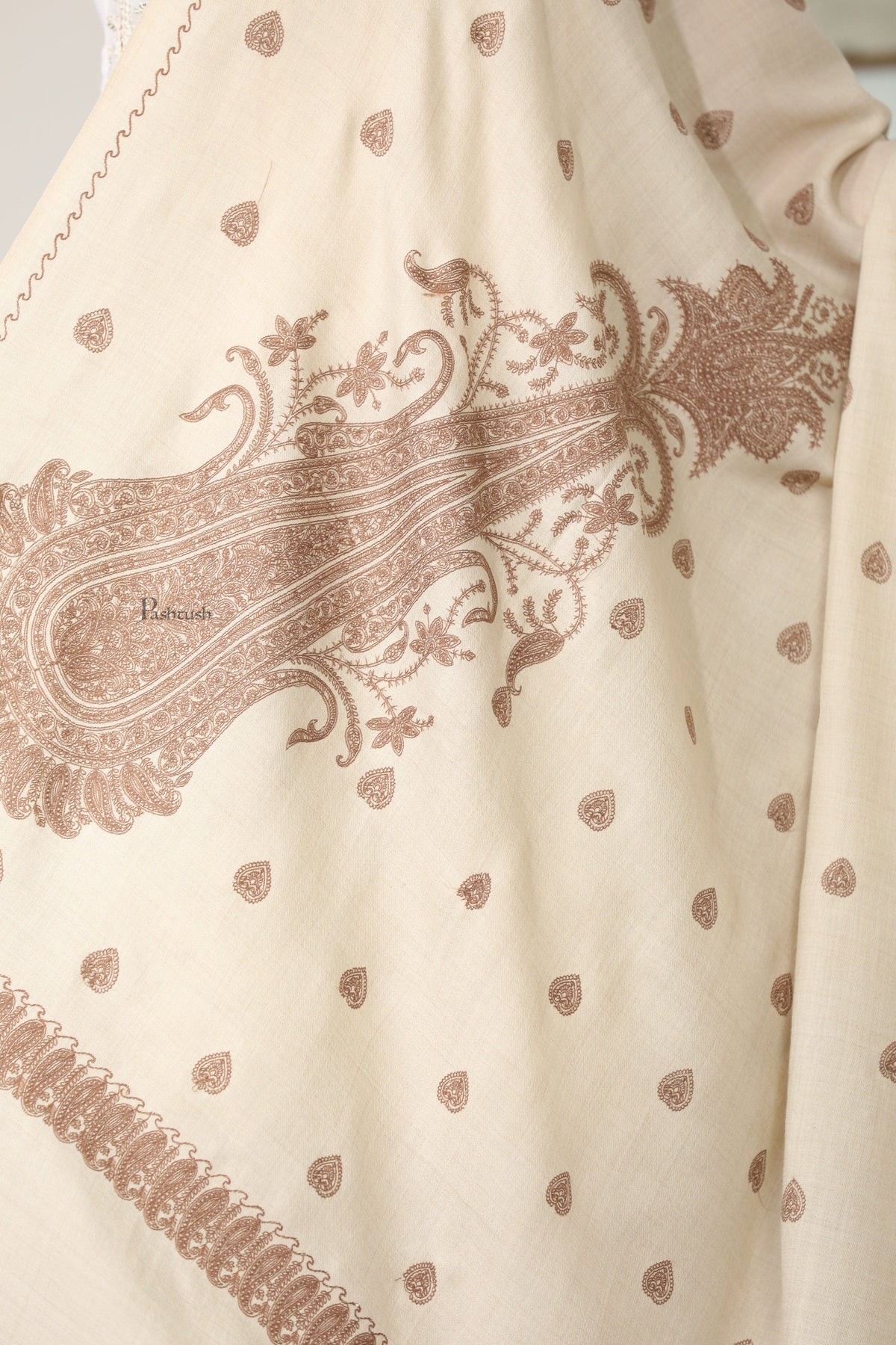 Pashtush Womens Extra Fine Wool Shawl, Tone And Tone Ambi Design, Ivory