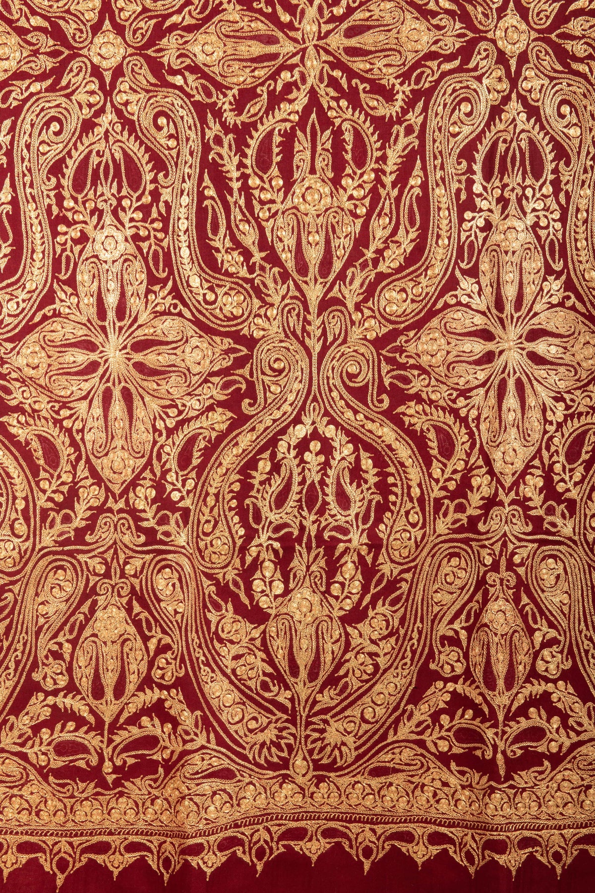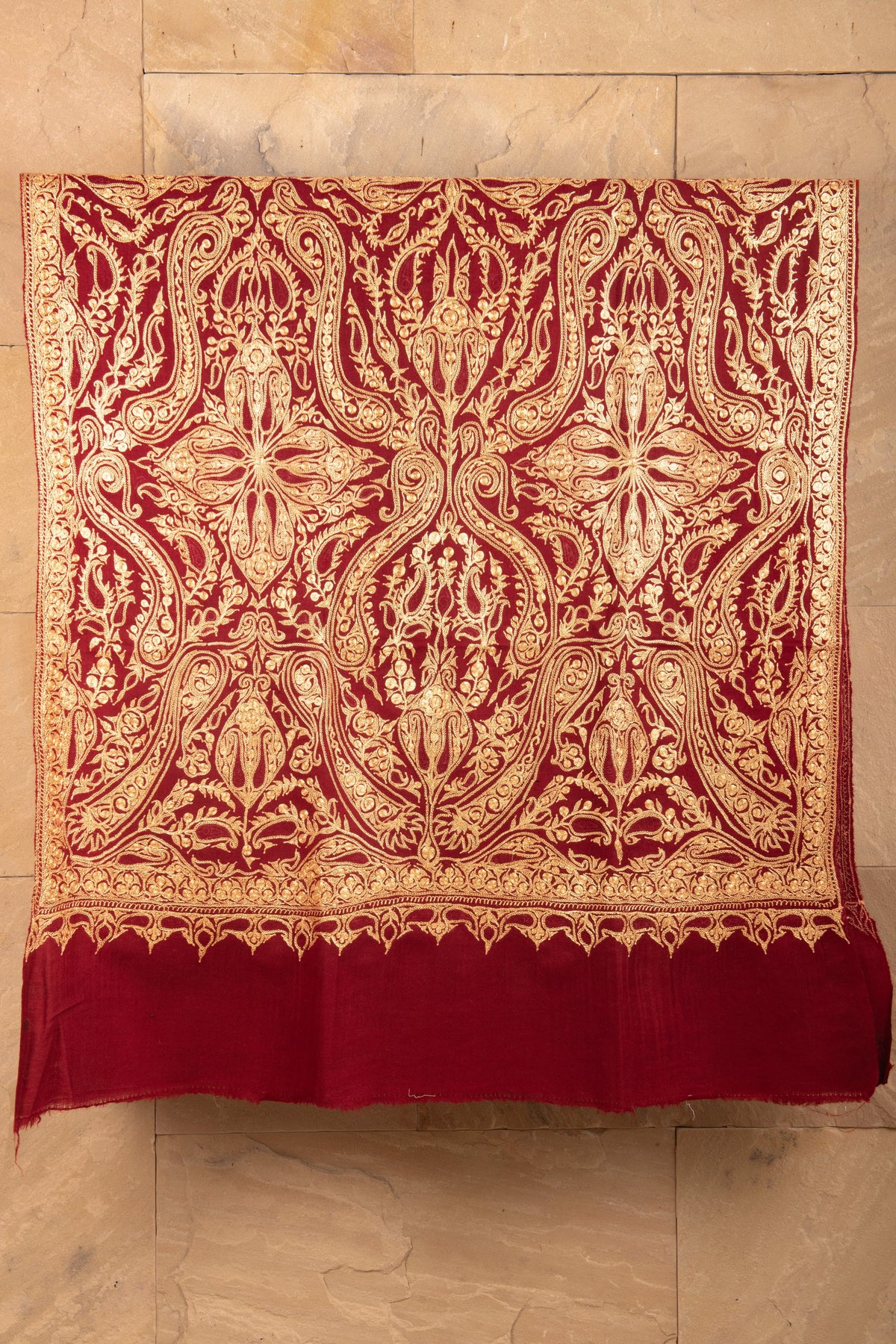 Pashtush Womens Pashmina Shawl with Real Kashmiri Tilla Embroidery, Bridal Crimson Maroon.