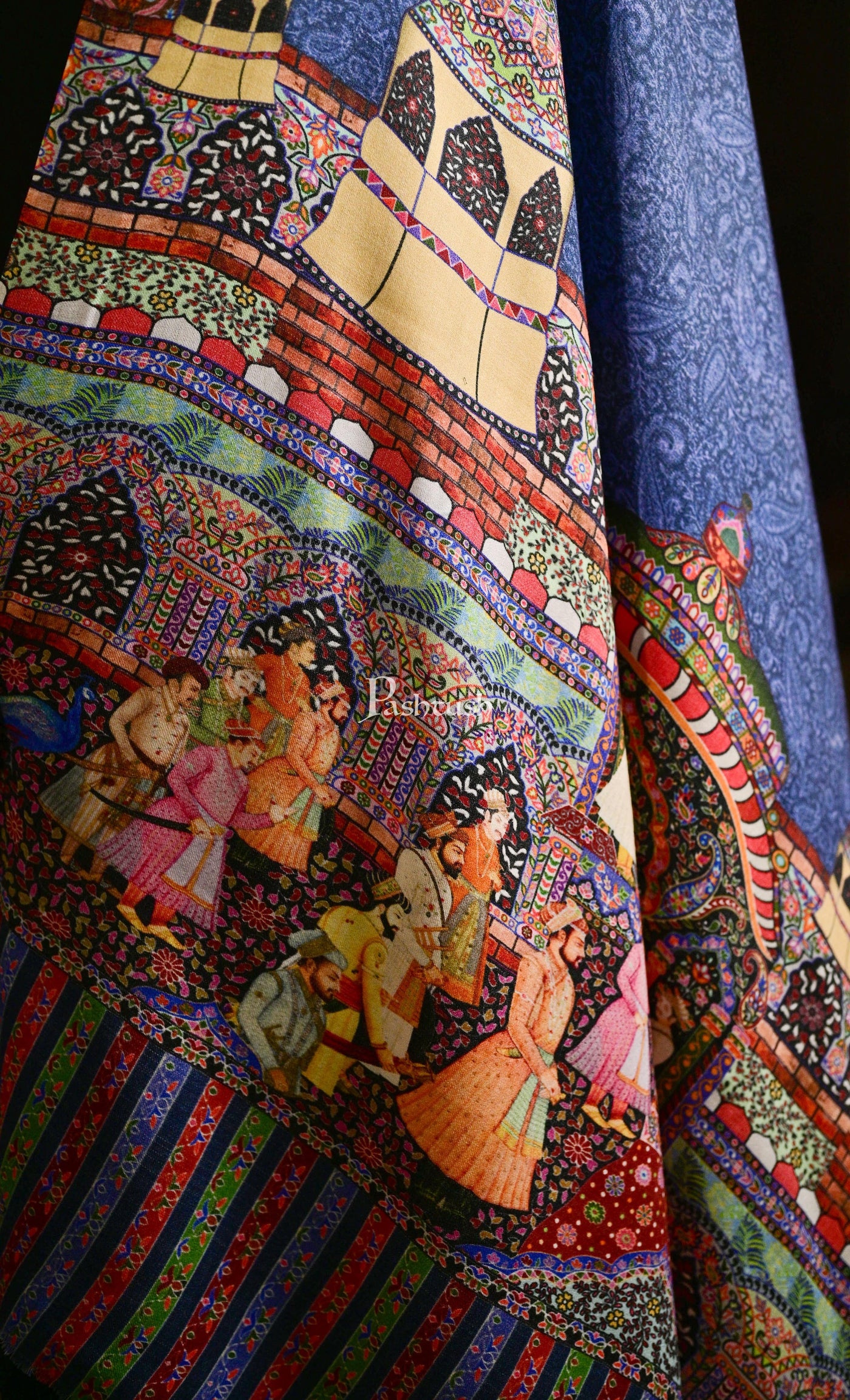 Pashtush Mens Mughal Darbar Printed 100% Pure Wool With Woolmark Certificate Stole, Lapis Blue