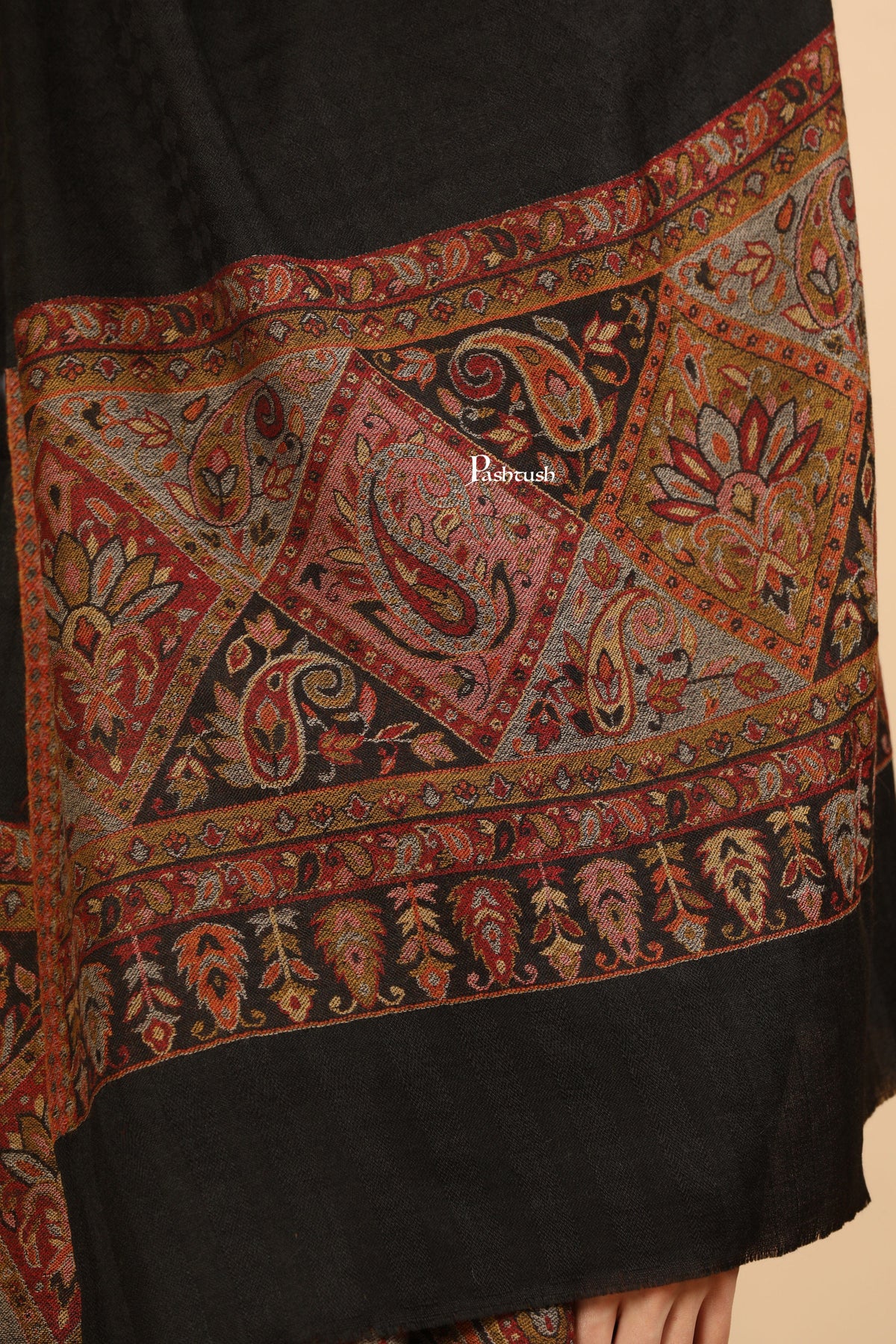 Pashtush Womens Extra Fine Wool Stole, Woven Geometric Design, Black