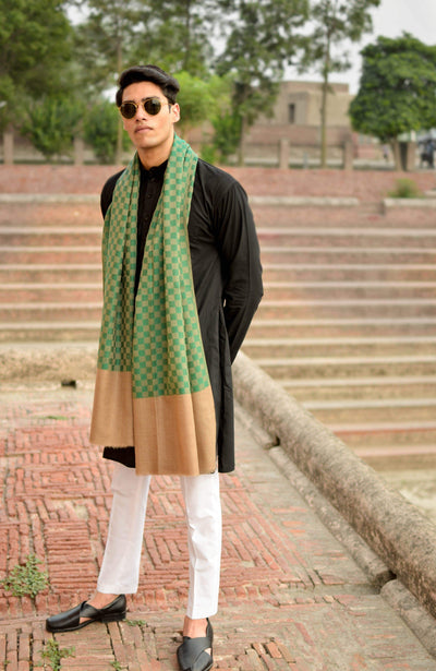 Pashtush Men'S Reversible Stole, Checkered Design Bottle Green