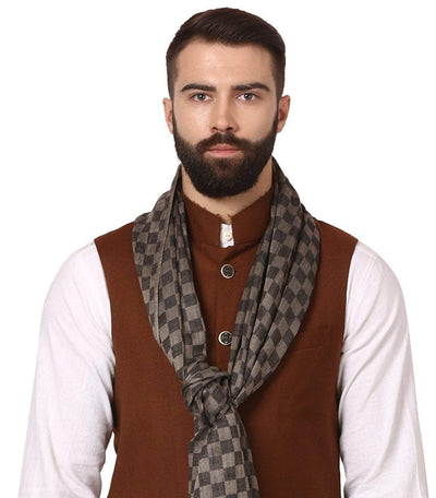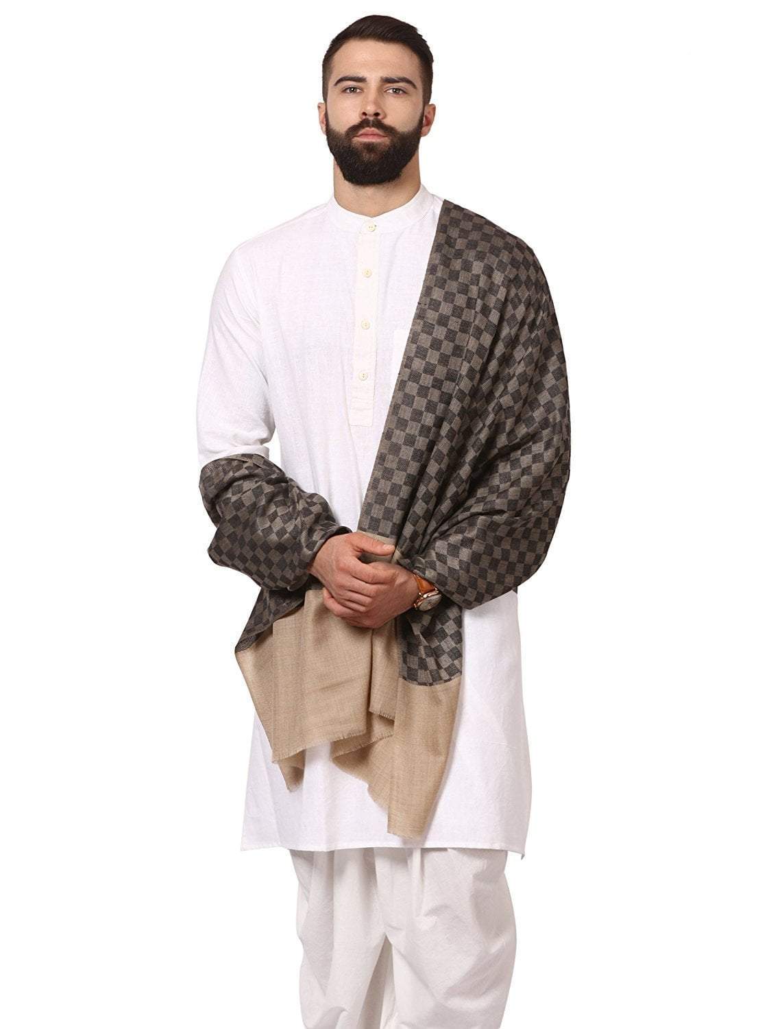 Pashtush Mens Stole, Checkered Design, Extra-Soft Cashmere Feel, Black