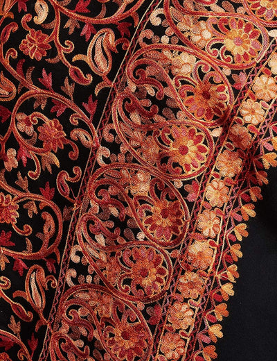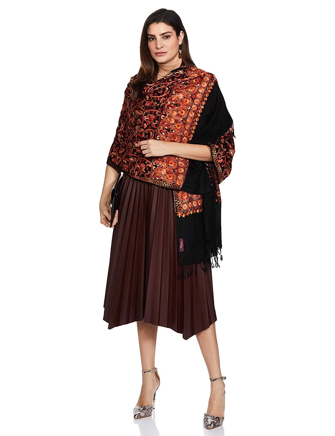 Pashtush Aari Embroidery Stole, Fine Wool, Black