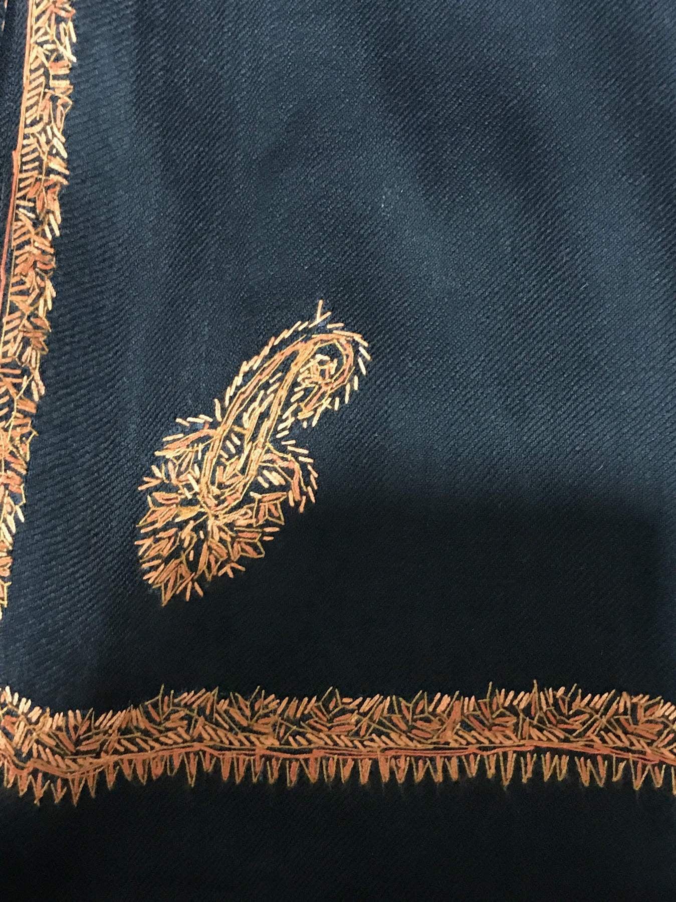 Pashtush India Mens Shawls Gents Shawl Pashtush Mens Hand Embroidered Border Kunj Full Size Black