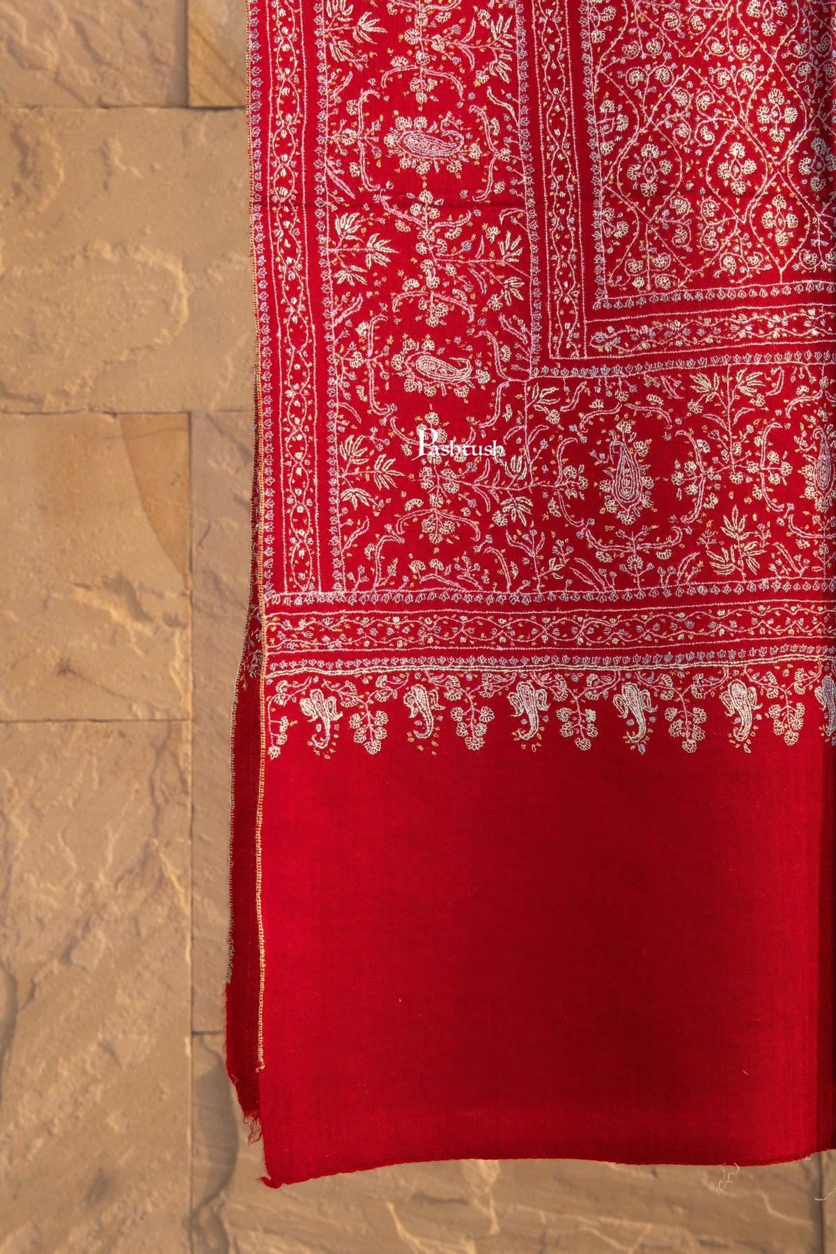 Pashtush Pure Pashmina shawl, Hand Embroidery, Maroon