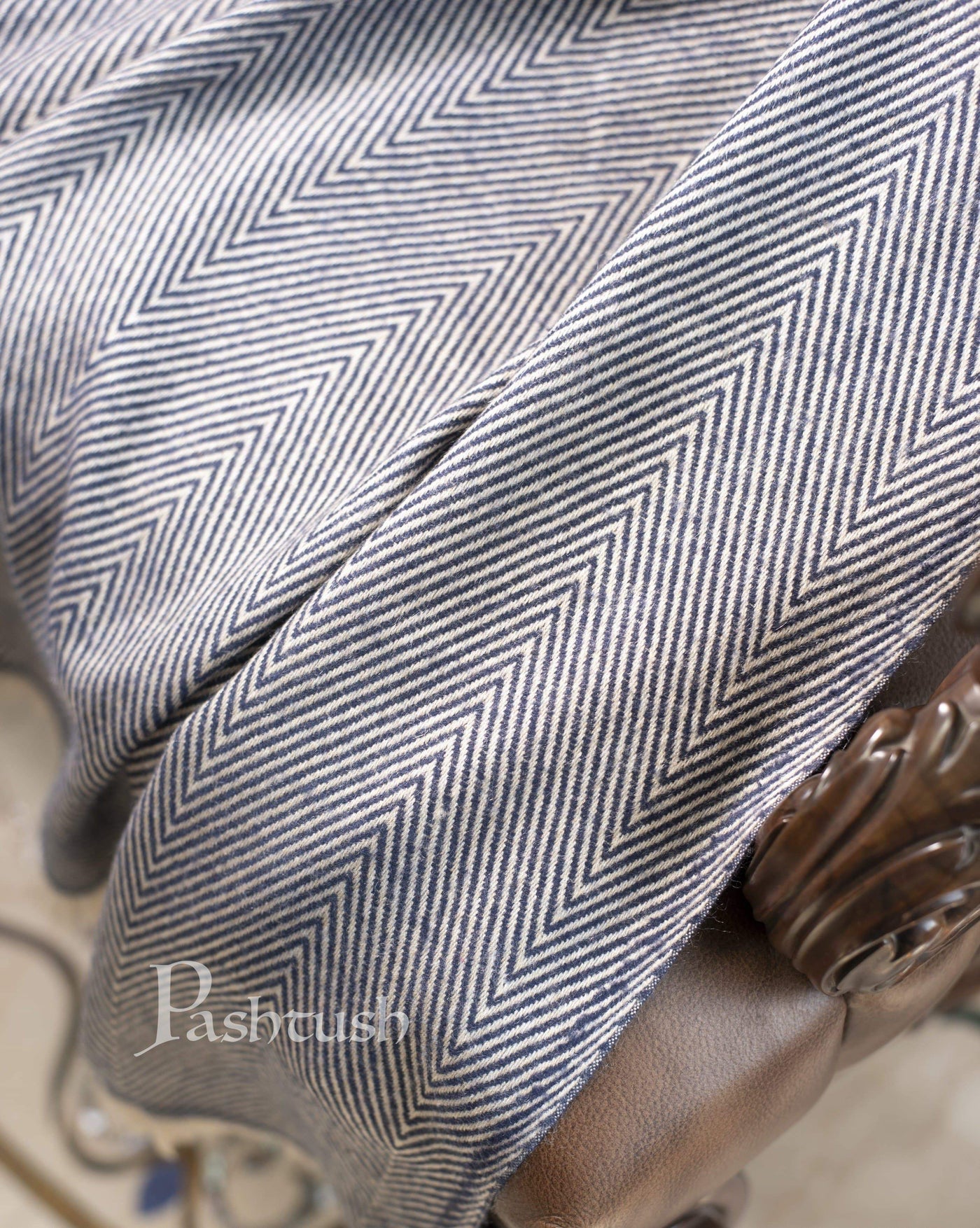Pashtush Chevron Thick And Warm Woollen Throw, Warm Blue