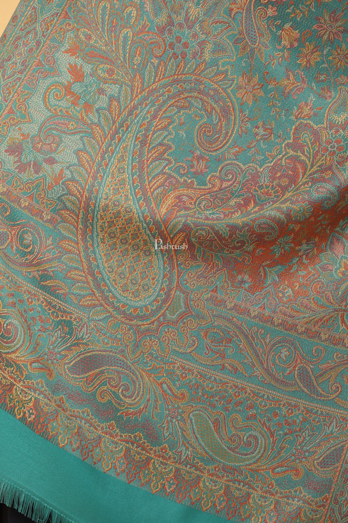 Pashtush Womens Faux Pashmina Stole, Pasiley Design, Arabic Sea Green
