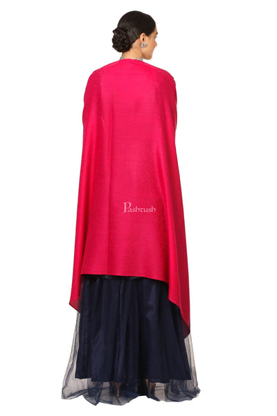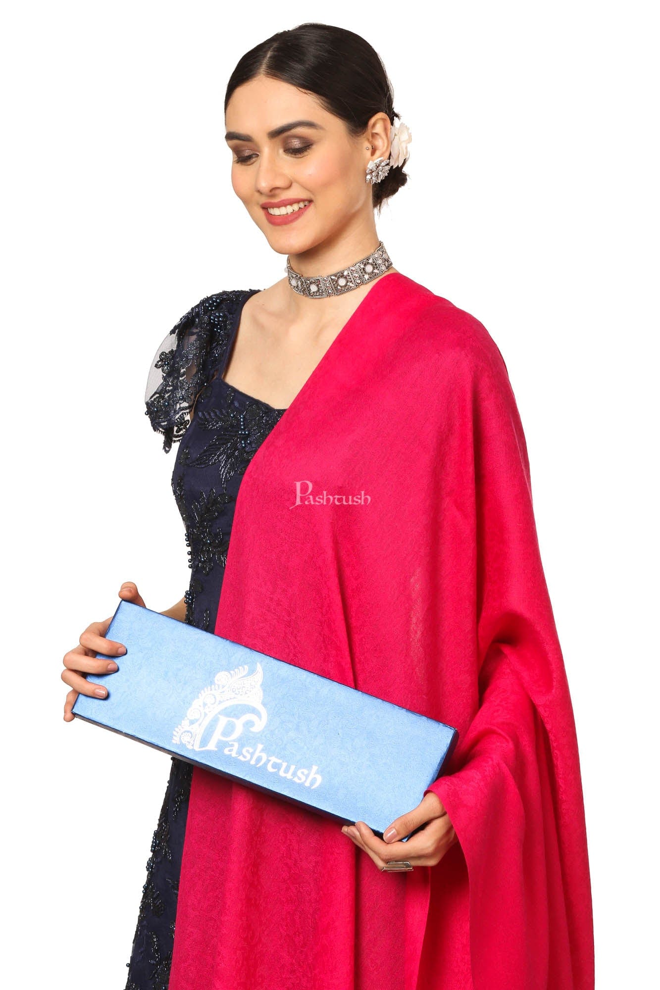Pashtush Women'S Fine Wool Shawl, Soft And Warm, Aztec Design, Jacquard Weave - Pink