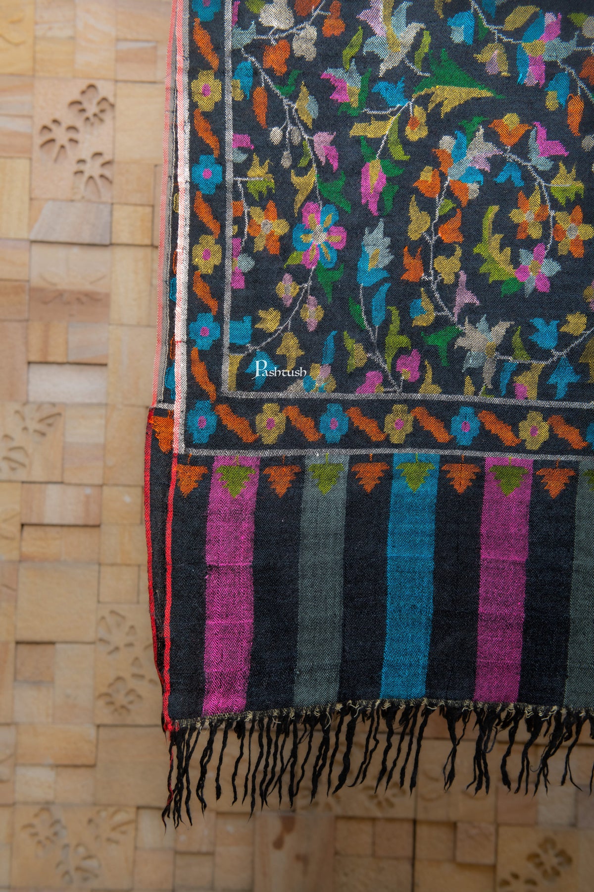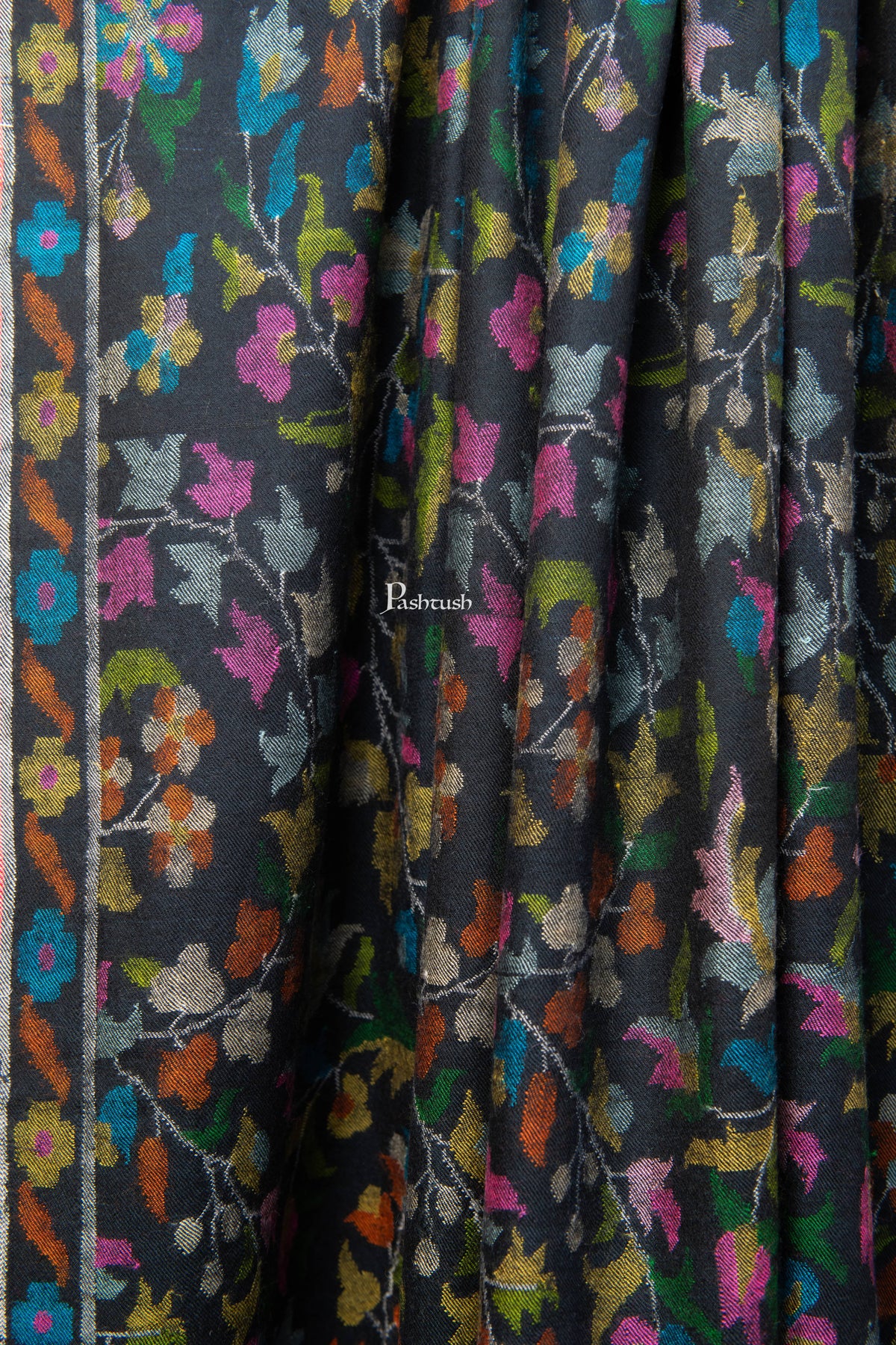 Pashtush Womens Pure Pashmina Handloom Kaani Shawl, Handwoven, Jewel Black