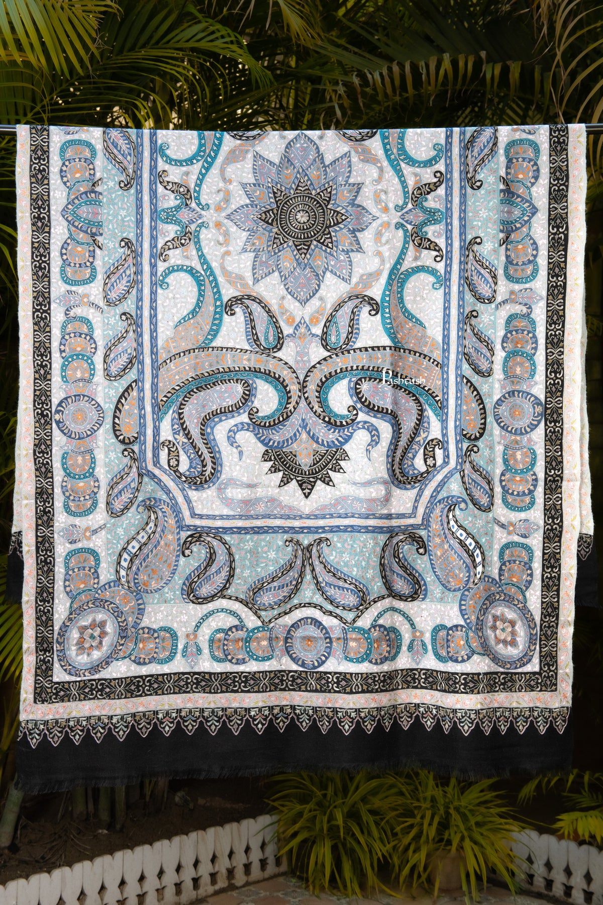 Pashtush Womens Pure Pashmina Shawl, Hand Embroidery, Hand Woven, Kalamkari Design, Multicolour