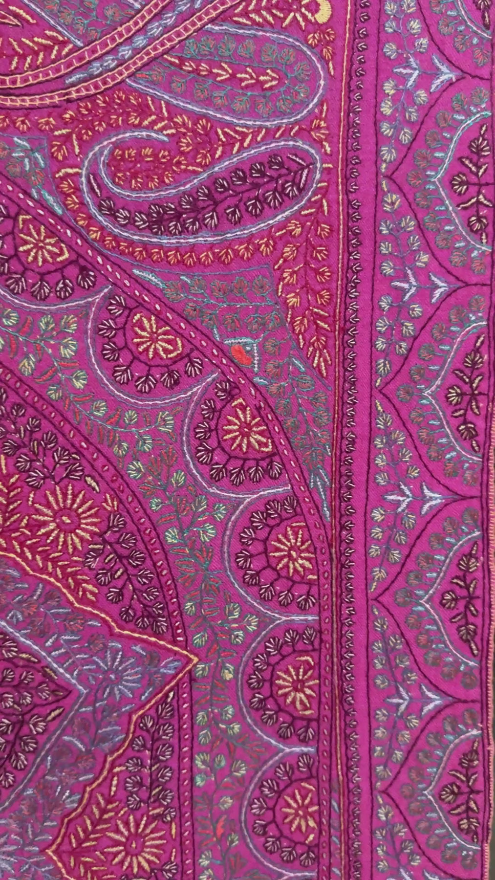 Pashtush Womens Pure Pashmina Shawl, Multicoloured Kashmiri Hand Embroidery Sozni, Ruby