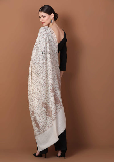 Pashtush Womens Shawl With Tone On Tone Embroidery, Soft Warm, Light Weight Wool,Ivory