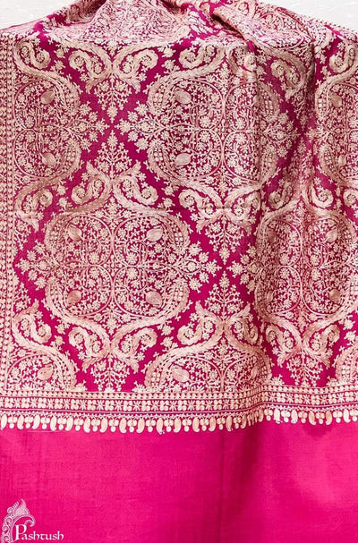 Pashtush Womens Silk-Fine Wool Blended Fine Wool, Nalki Embroidery Needlework Stole, Deep Pink