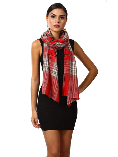 Pashtush Cashmere Wool Blended Plaid Muffler - Red And Beige Plaid