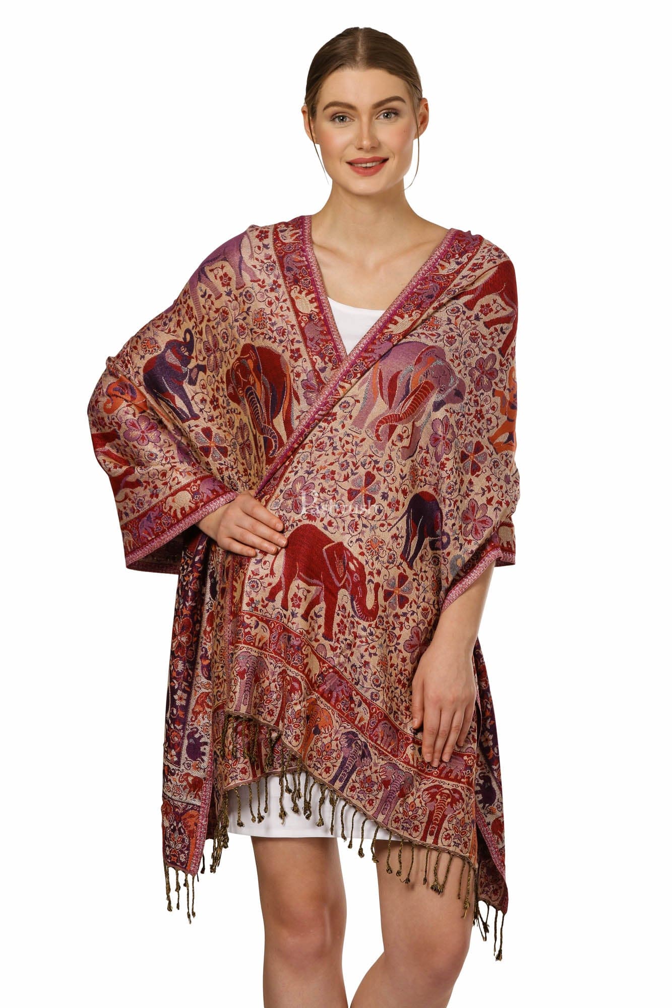 Pashtush Womens Fine Bamboo Reversible Elephants Tribal Scarf, Multicolour