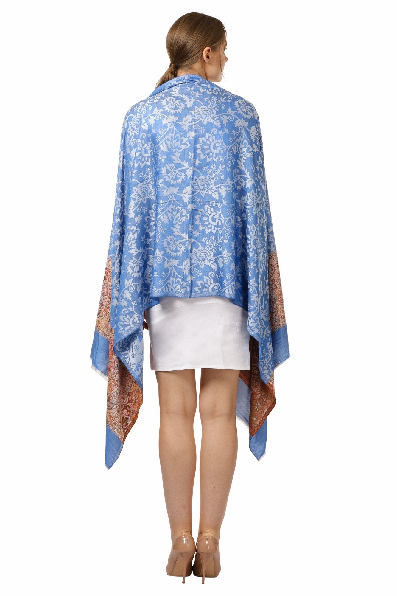Pashtush Womens Fine Bamboo Jacquard Scarf, Reversible, Blue - Azure